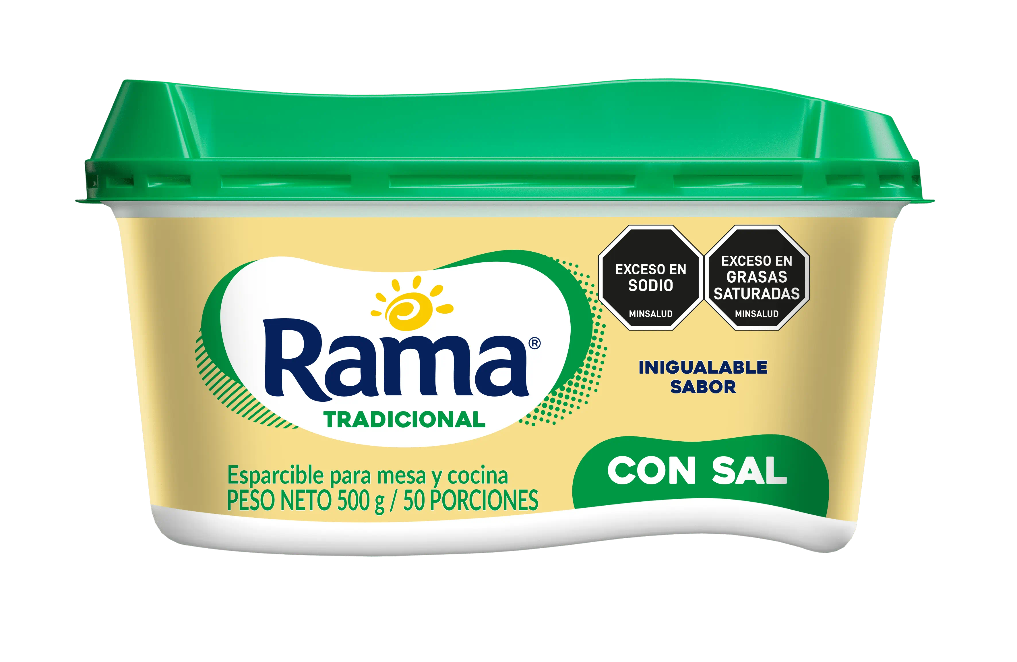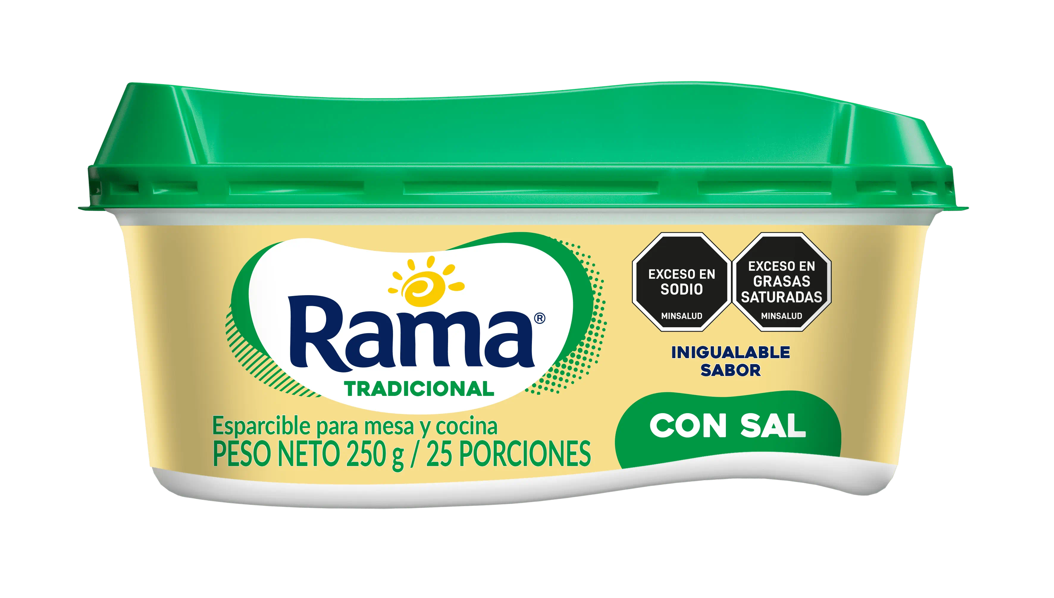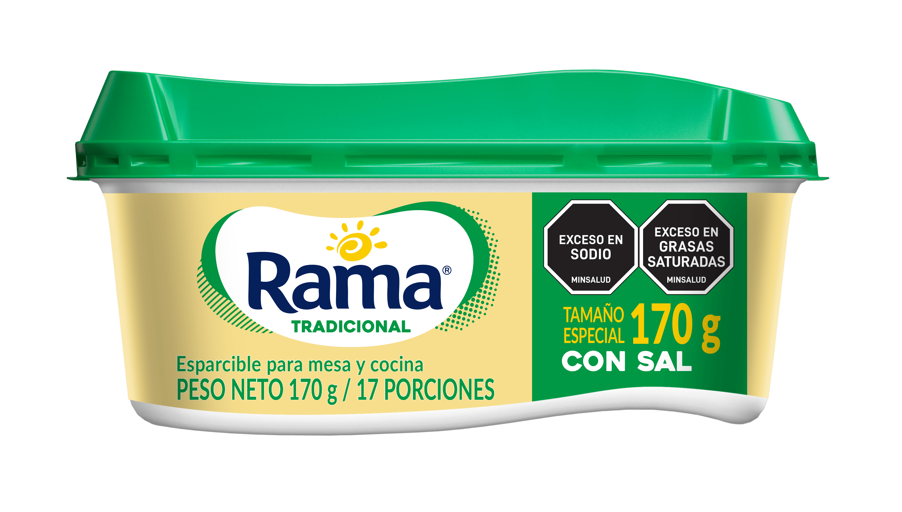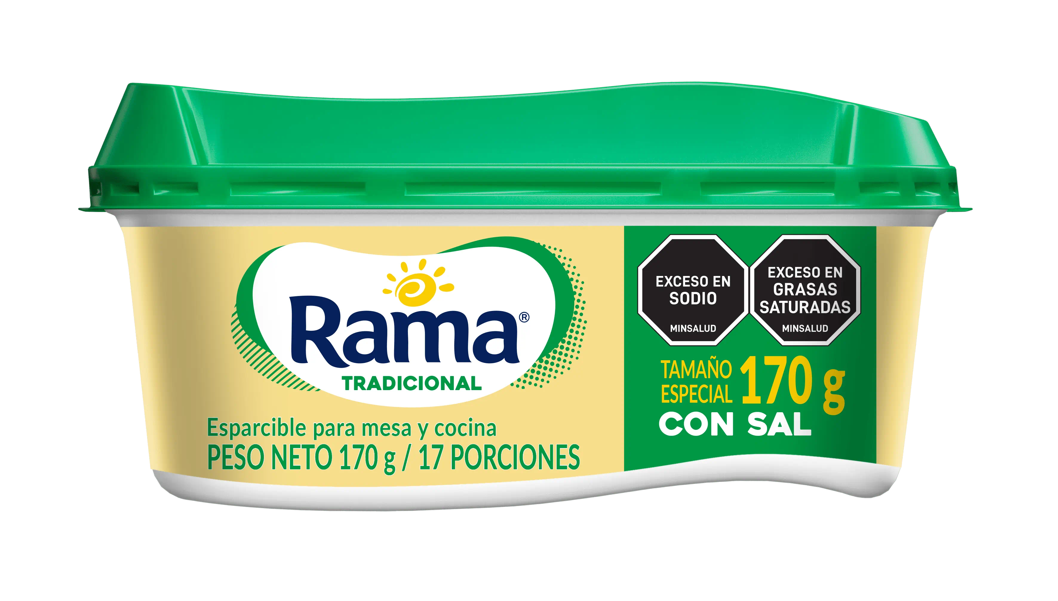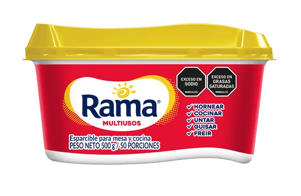 Esparcible para mesa y cocina. Rama Tradicional con Sal es una emulsión de consistencia cremosa, fabricada con aceites vegetales, agua y el inigualable sabor de Rama.