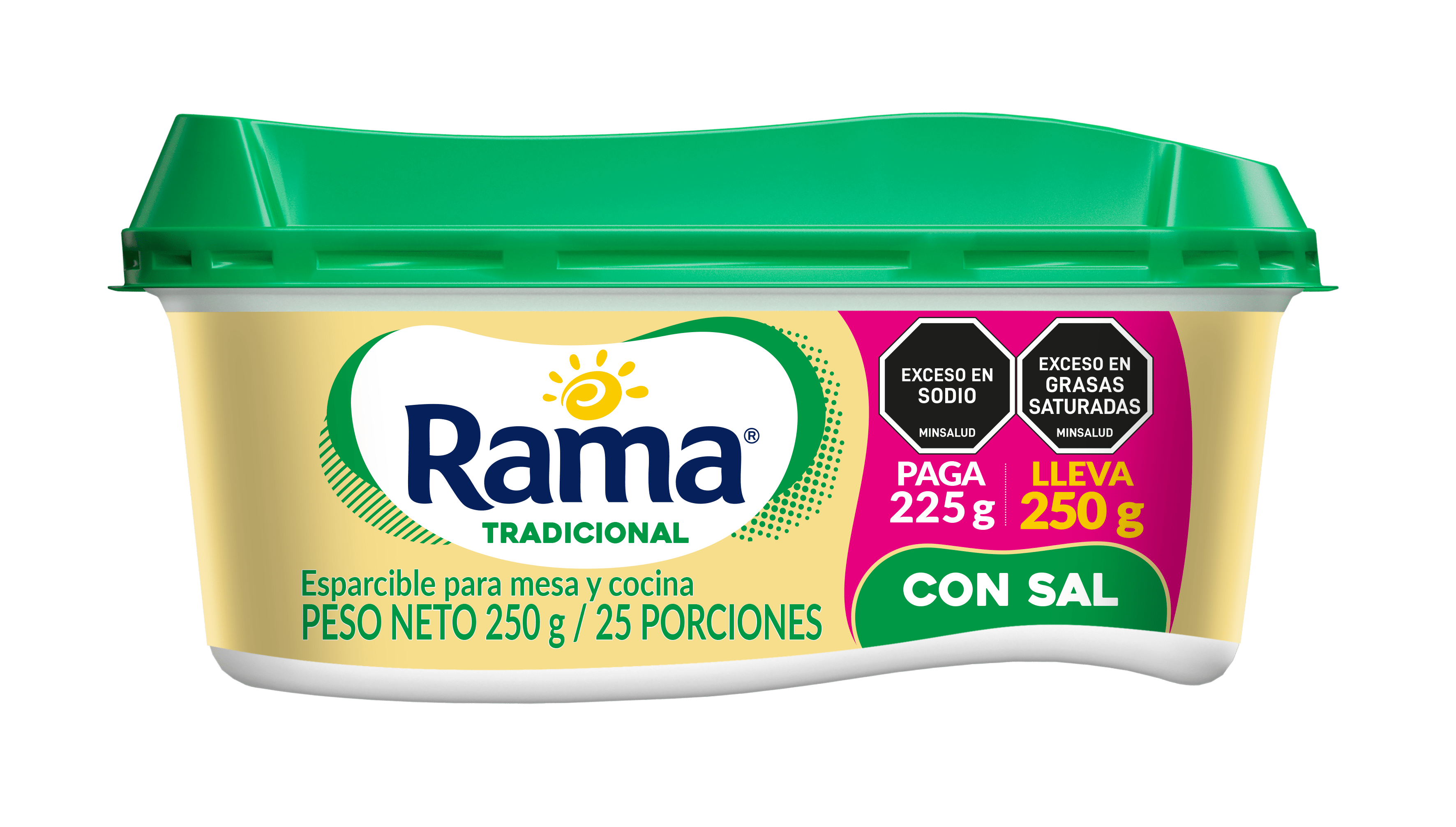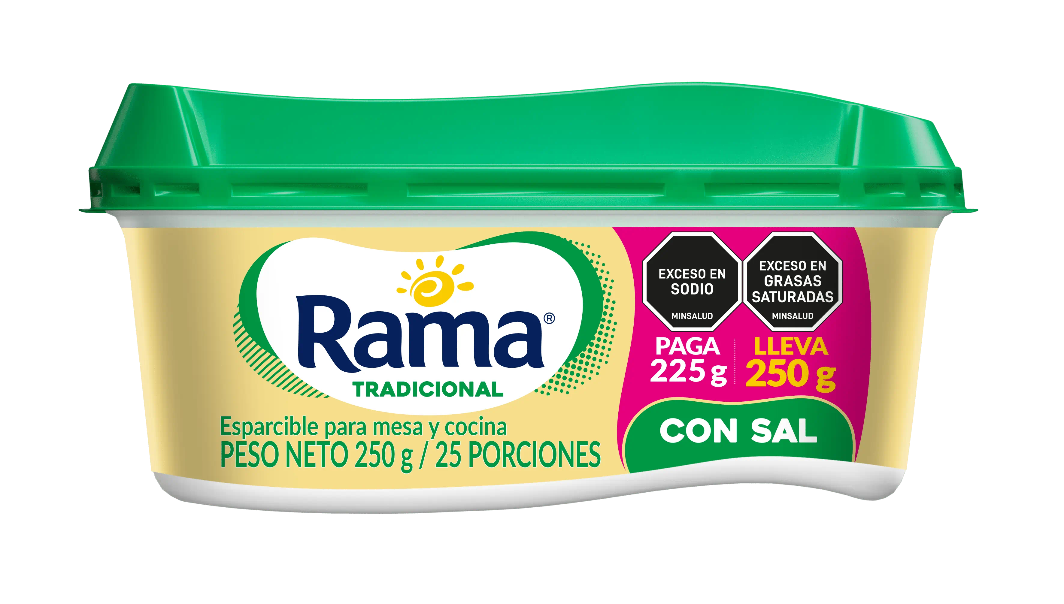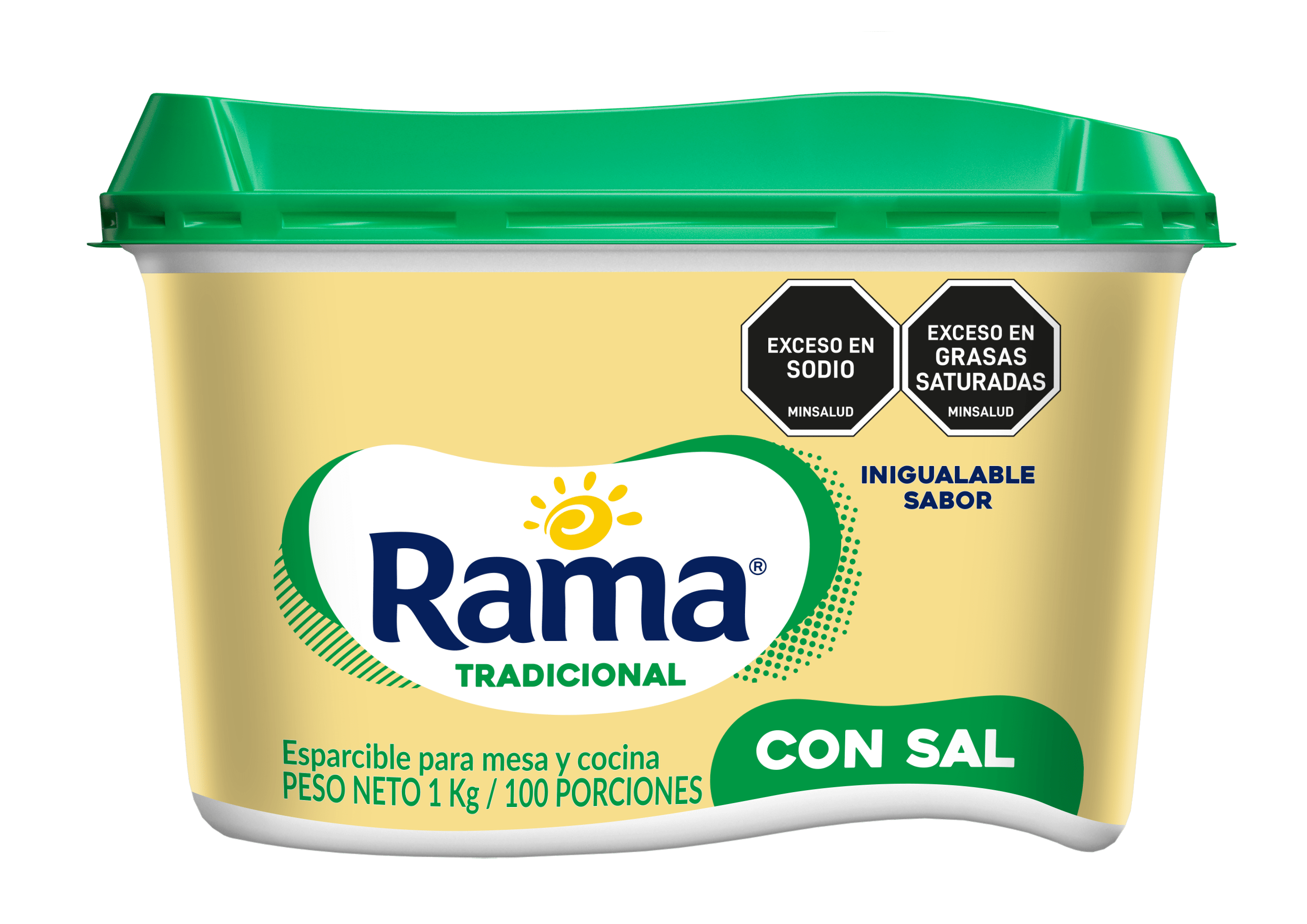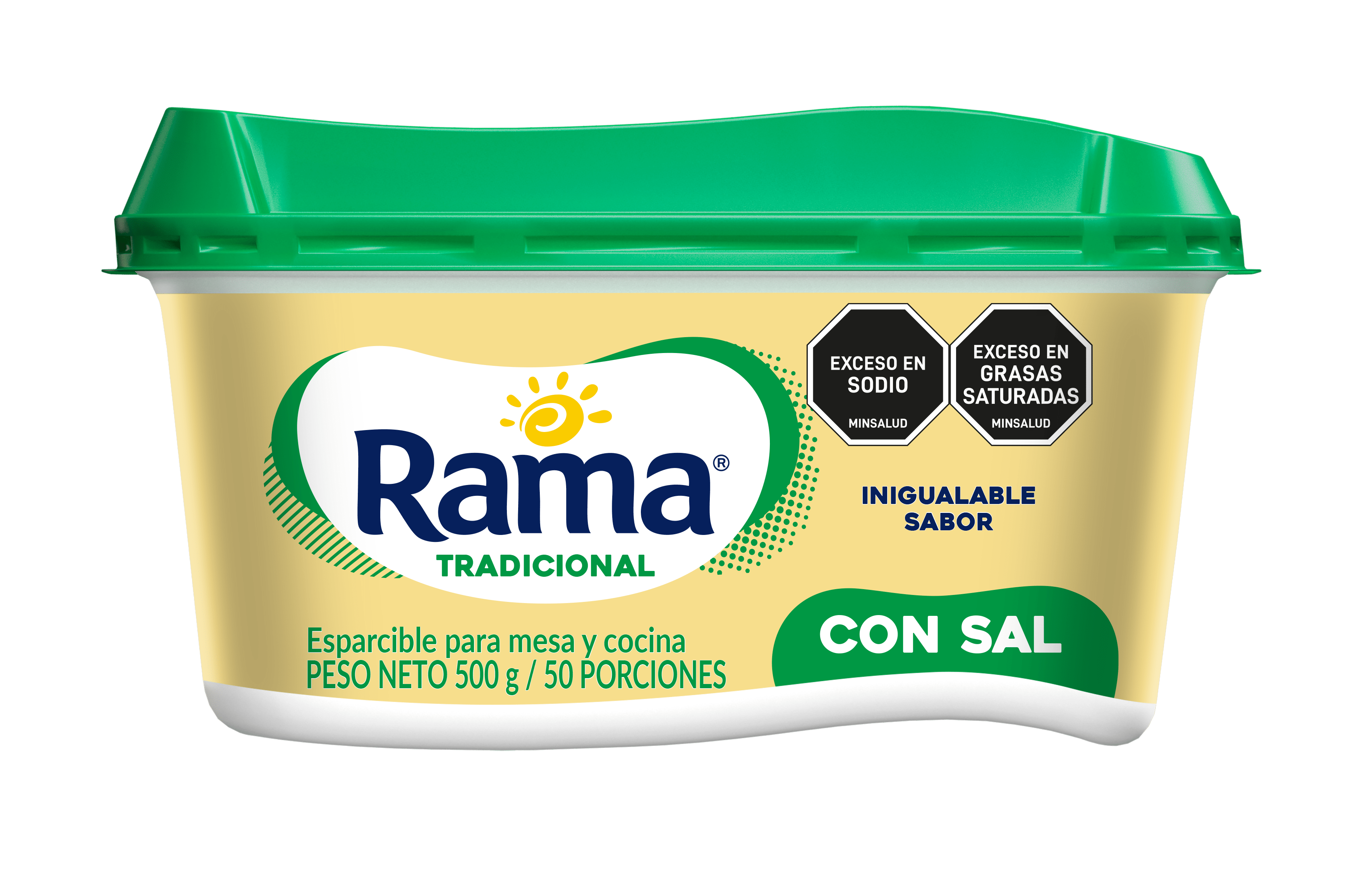 Esparcible para mesa y cocina. Rama Tradicional con Sal es una emulsión de consistencia cremosa, fabricada con aceites vegetales, agua y el inigualable sabor de Rama.