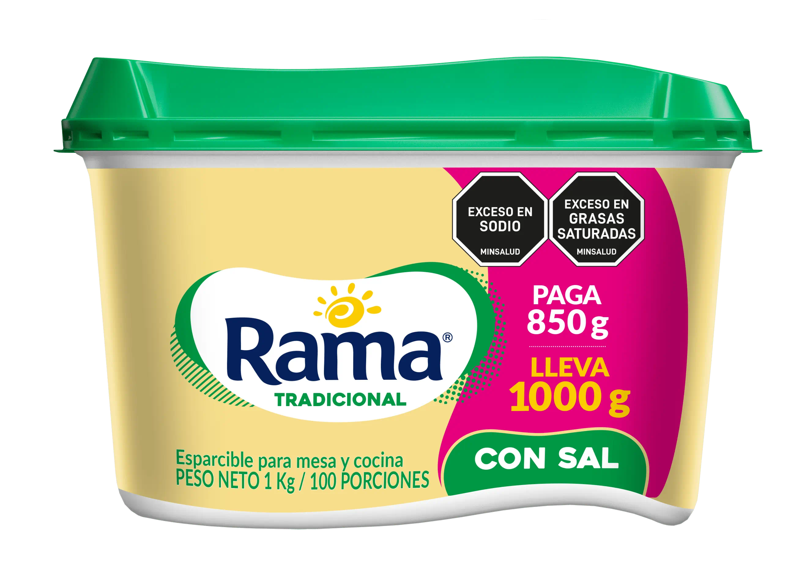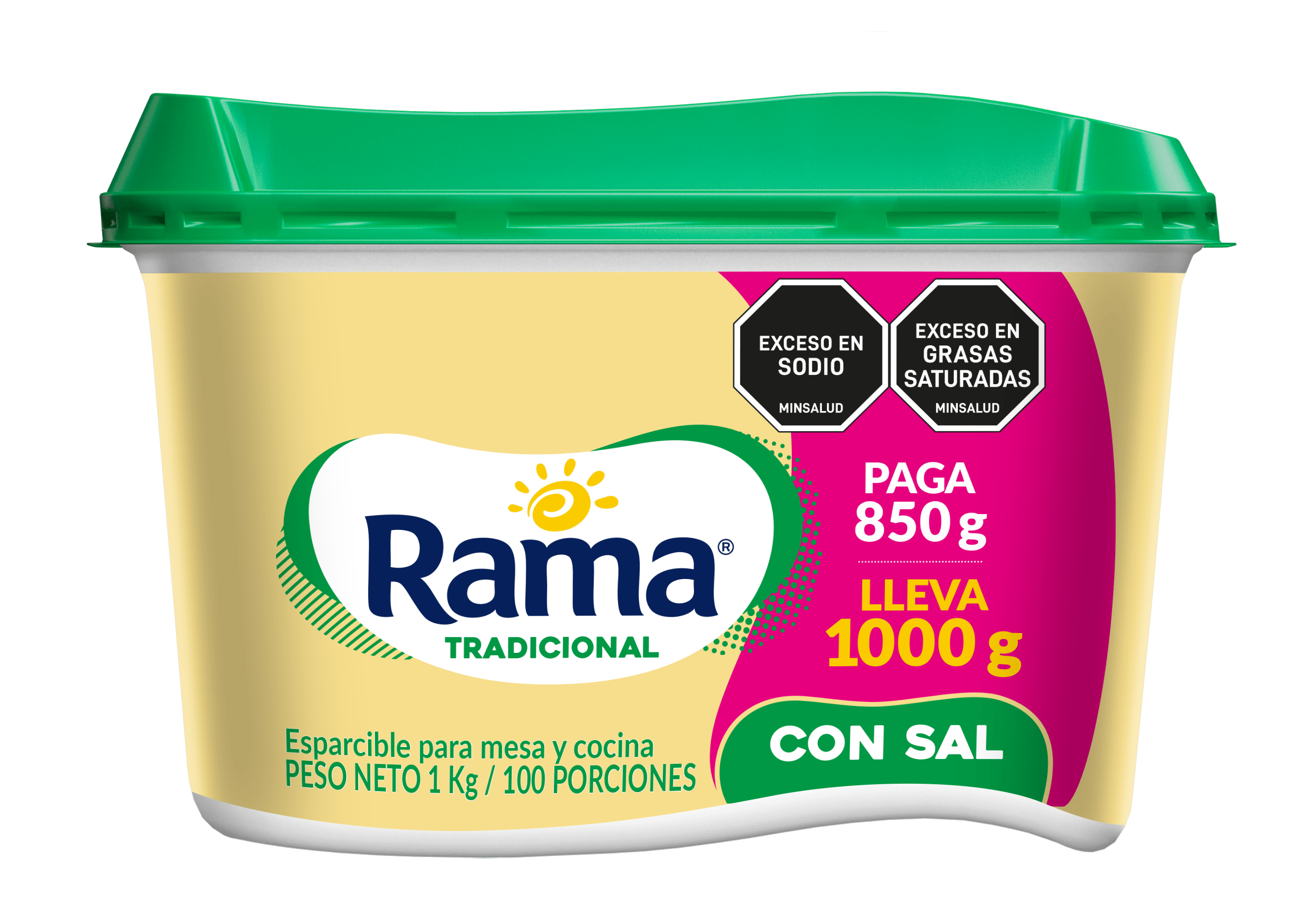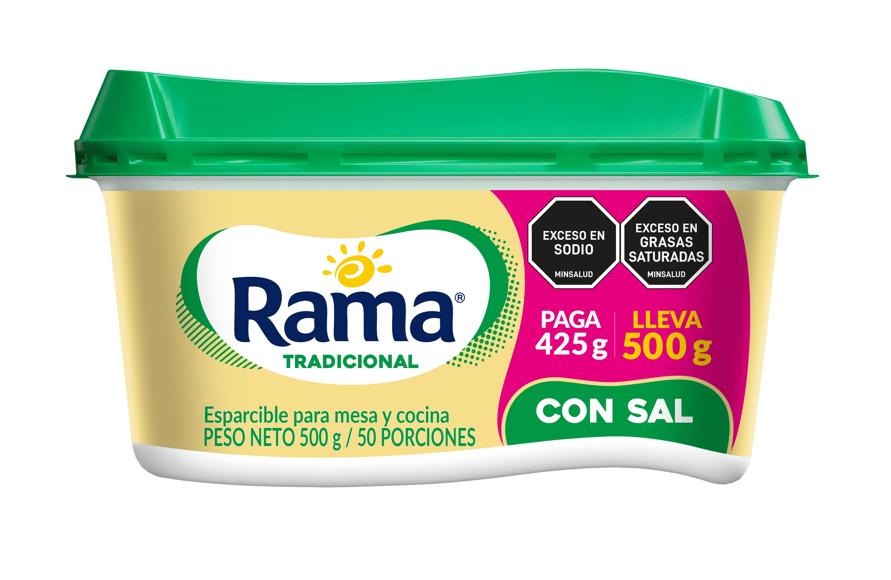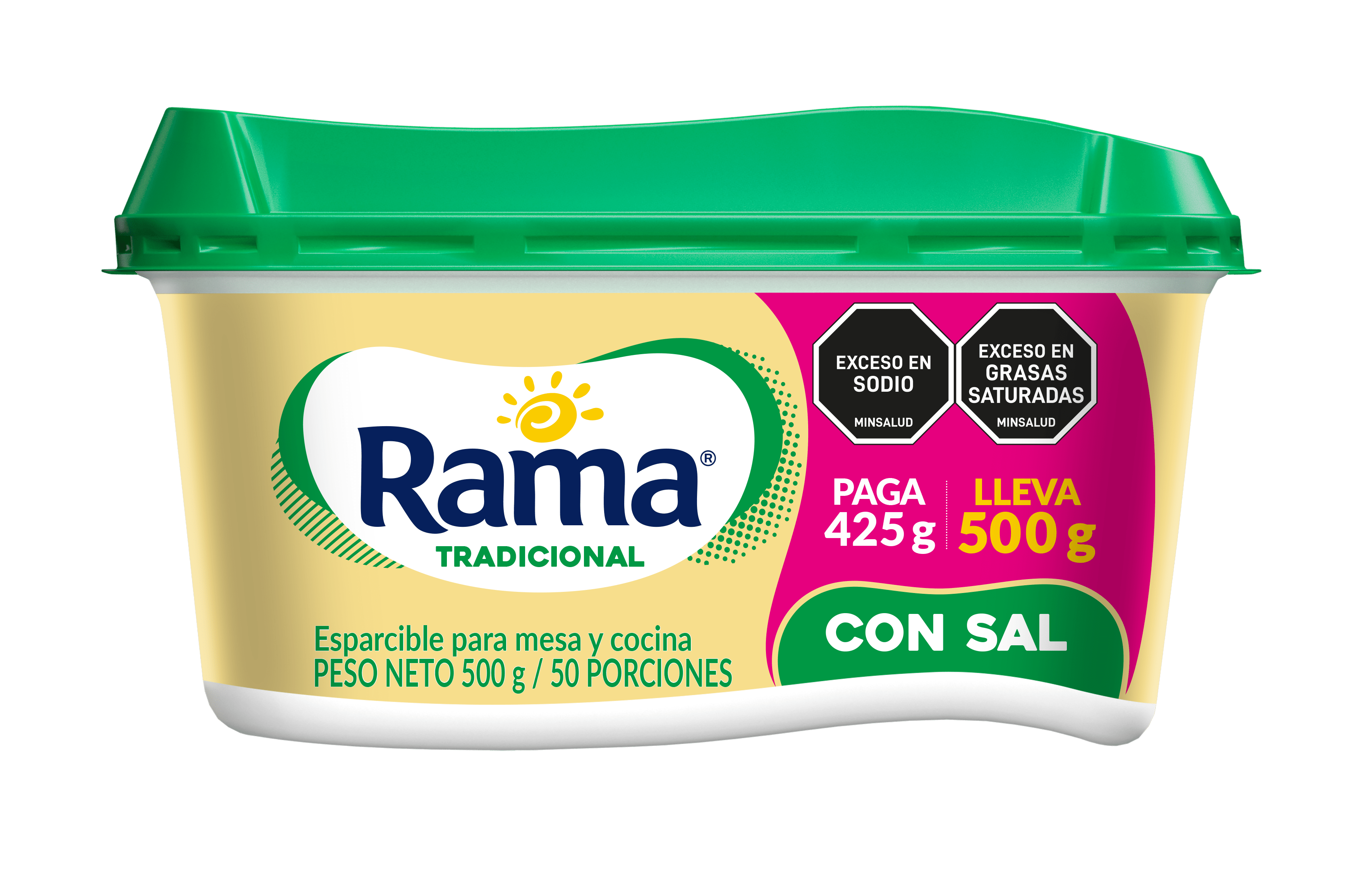 Esparcible para mesa y cocina. Rama Tradicional con Sal es una emulsión de consistencia cremosa, fabricada con aceites vegetales, agua y el inigualable sabor de Rama.